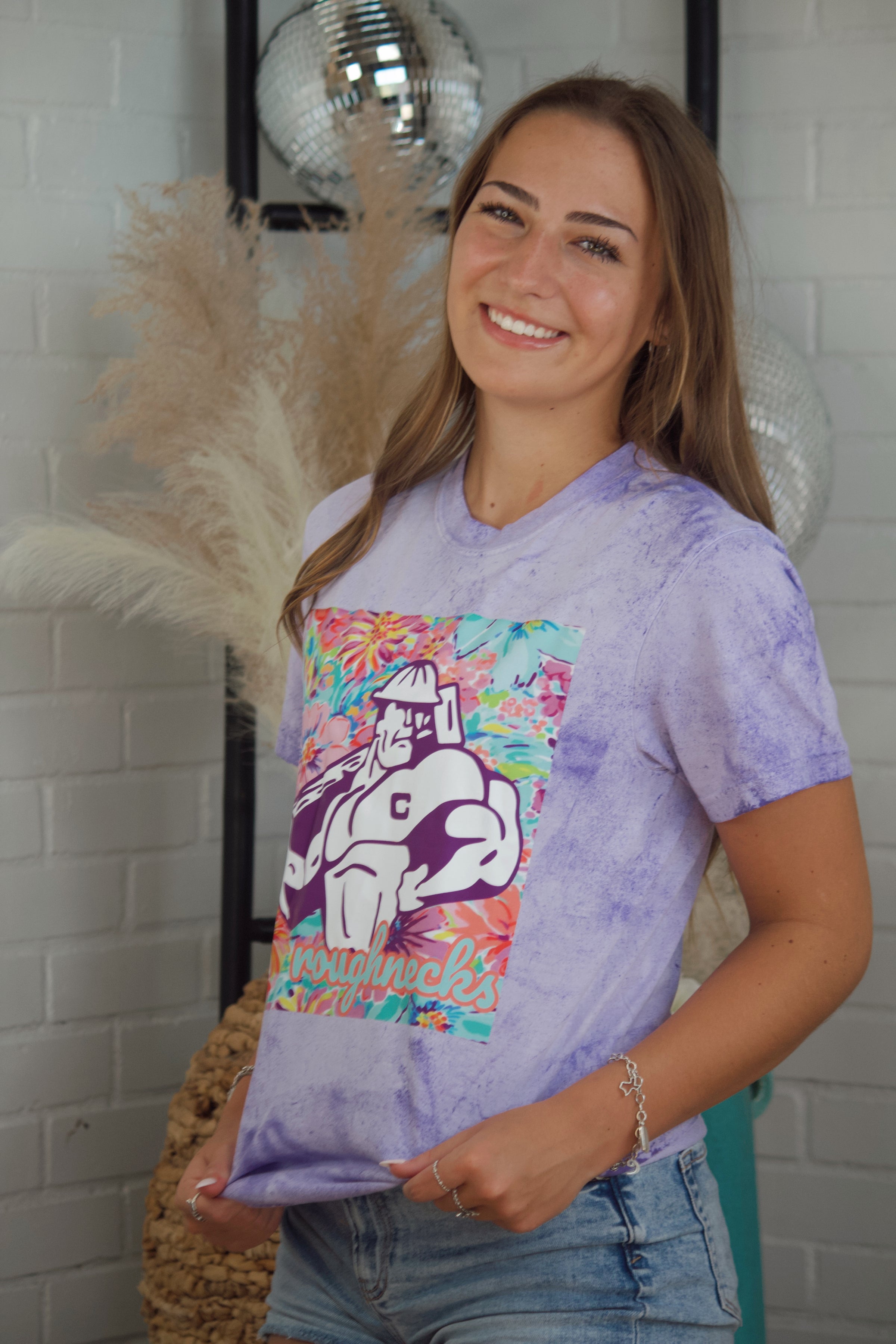 Bring the bloom to school spirit with this vibrant floral graphic tee! Featuring bold blooms and your school’s name front and center, this design adds a fun, feminine twist to traditional spirit wear. Whether you're cheering from the stands or styling it for class, this tee is the perfect way to show off your pride while standing out from the crowd. School colors + floral flair = a win every time!