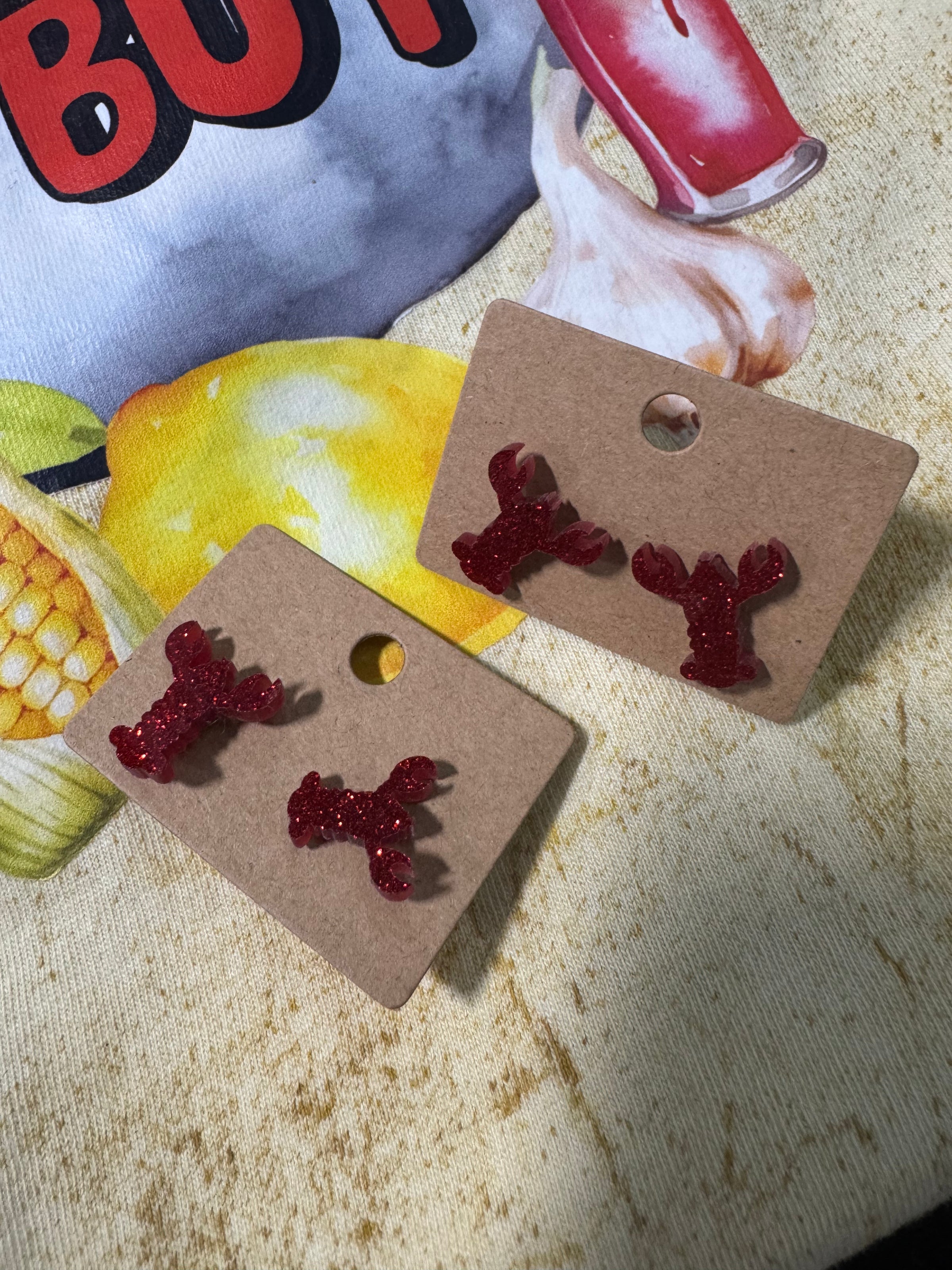 Spice up your look with the Cajun Cutie Glitter Crawfish Stud Earrings! These bold, red glitter plastic crawfish studs bring a fun and festive touch to any outfit—perfect for seafood lovers, festival-goers, and anyone ready to let the good times roll. Whether you're heading to a crawfish boil or just want to show off your Southern spirit, these earrings are a total catch!3